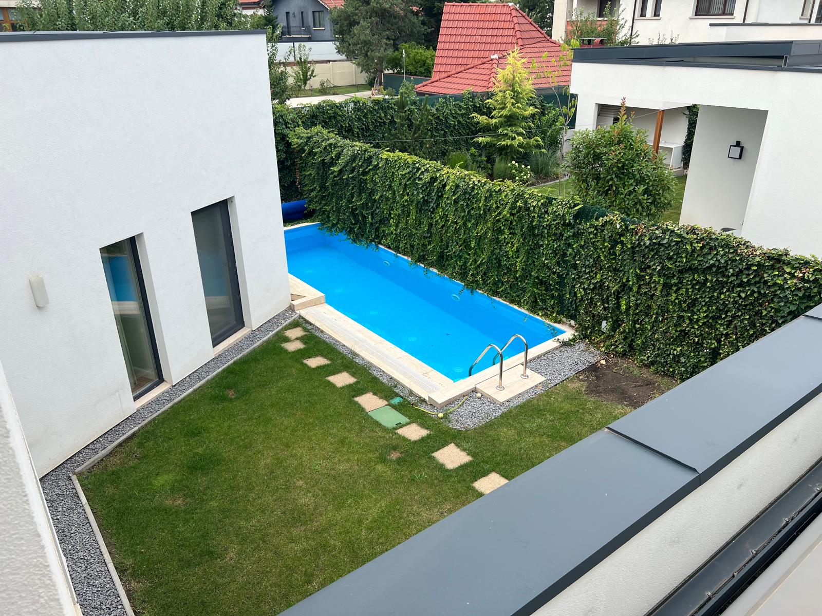 Costa Real Estate are placerea de a propune catre vanzare o vila ultramoderna situata in zona Iancu Nicolae. Proprietatea dispune de o piscina moderna, incalzire in pardoseala, un design interior deosebit, toate camerele avand o inaltime mult peste media. Deasemenea, vila dispune de un garaj dublu acoperit, terase atat pe zona de parter cat si pe zona de etaj. Parterul propune o zona de acces generoasa, o bucatarie ultramoderna mobilata si utilata, un living extrem de generos cu semineu, o baie pentru zona de zi, si un dormitor matrimonial cu dressing si baie proprie ultramoderna. Accesul catre zona exterioara si piscina se poate face atat din zona de living cat si din zona bucatariei, care se extinde la exterior cu o terasa acoperita. Etajul propune 3 dormitoare ultra generoase cu bai proprii. Proprietatea face parte dintr-un mini-complex cu acces privat. Pentru mai multe detalii va stam la dispozitie 24/7!